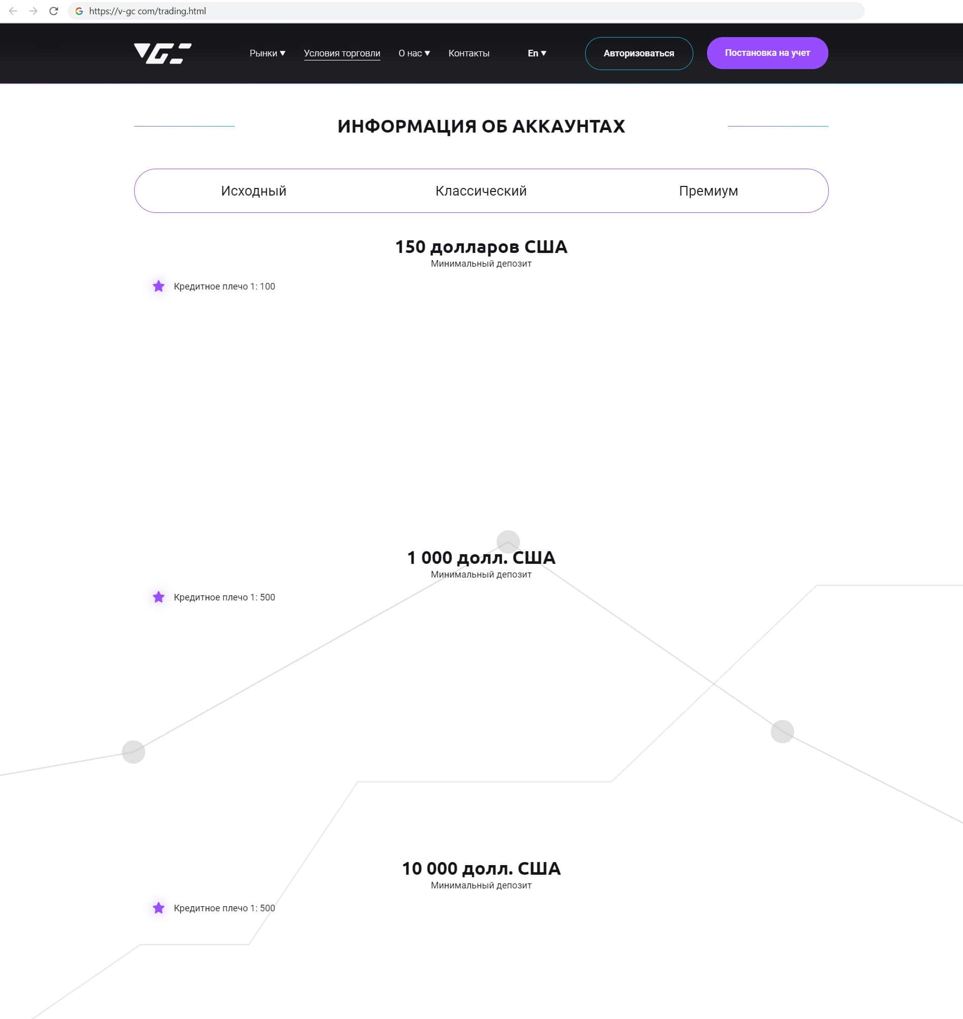 V GC - очередной фальшивый брокер, который кидает своих клиентов. Данная организация выдаёт себя за брокерскую компанию, которая якобы предоставляет клиентам самые выгодные условия спекулирования, но на самом деле это мошенники, которые заманивают в финансовую ловушку наивных пользователей, после чего выманивают денежные средства и присваивают их. Так же контора кидал связана с финансовыми мошенниками IFSC. Если вы дорожите своими деньгами и не хотите их лишиться, то никогда не связывайтесь с данными разводилами.