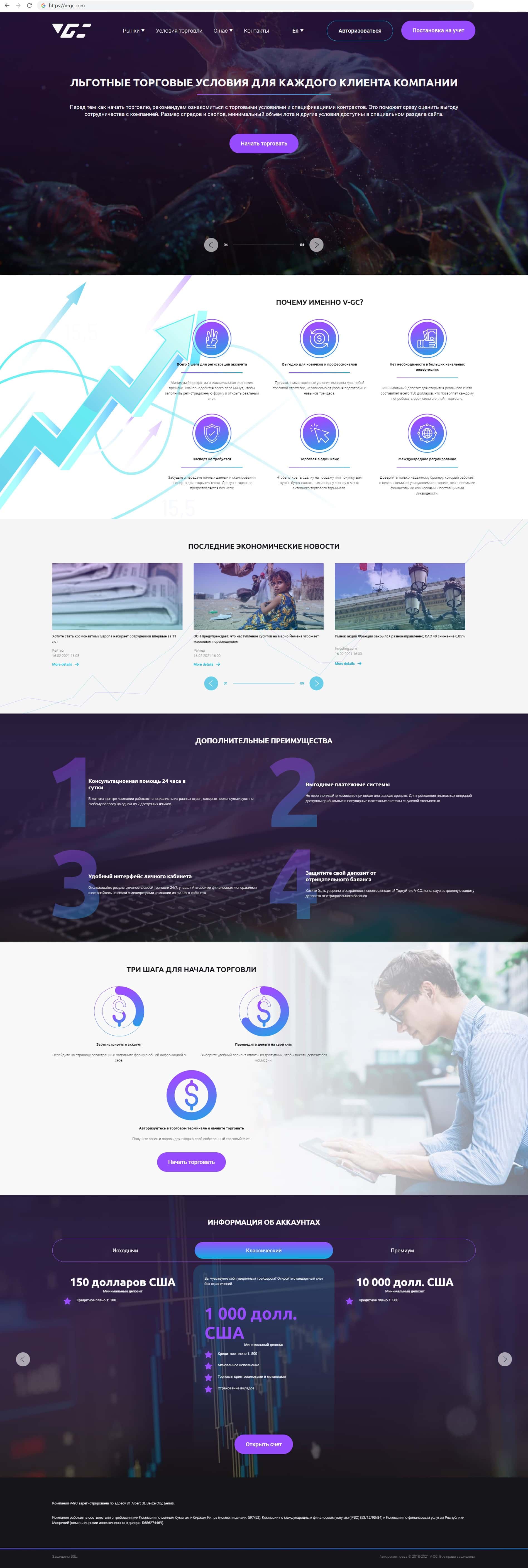 Главный интернет ресурс лохотронщиков V GC не представляет из себя ничего особенного, так как это обыкновенный шаблонный проект, который компания создала на скорую руку.