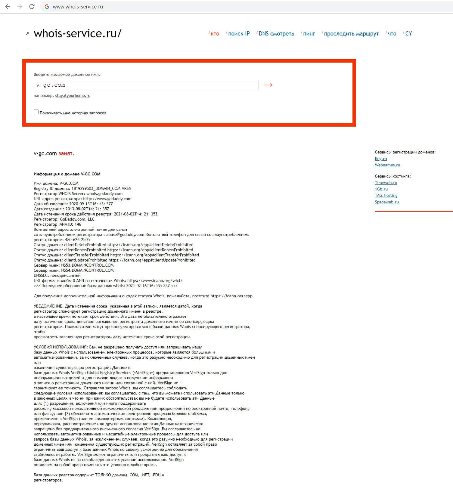 Кто является владельцем доменного адреса конторы кидал В ГС?