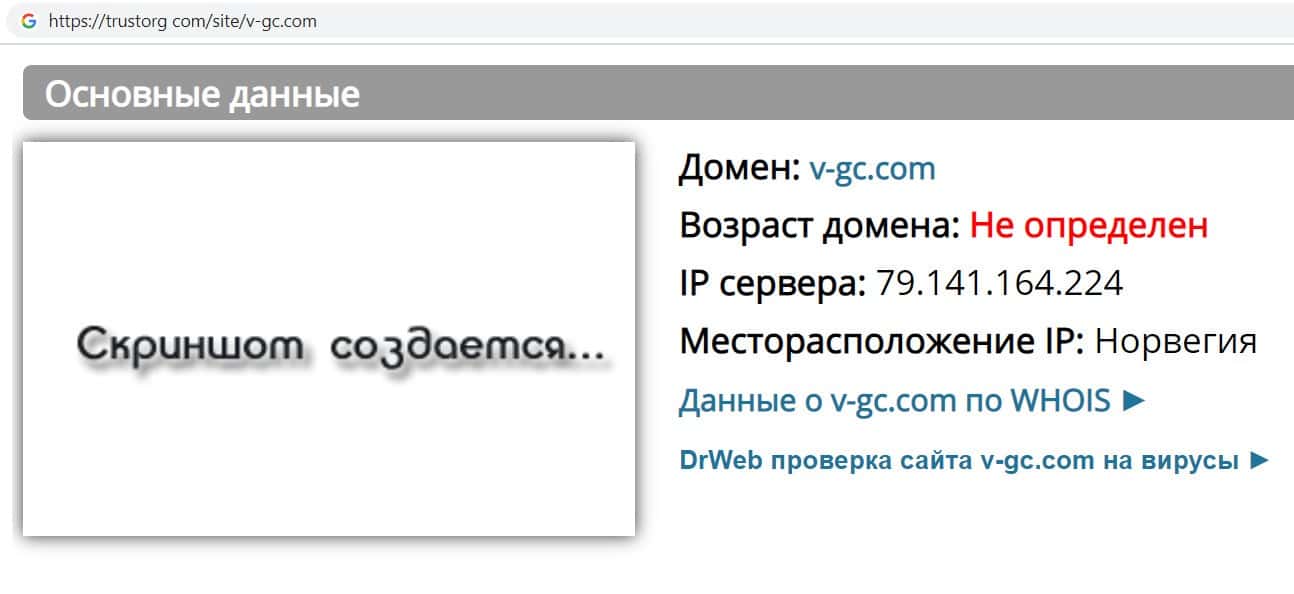 Мы проверили сайт V GC через интернет ресурс scamadviser com. Оказалось, что сайт кидал не оптимизирован к поисковым системам и его владелец скрывает свою личность.