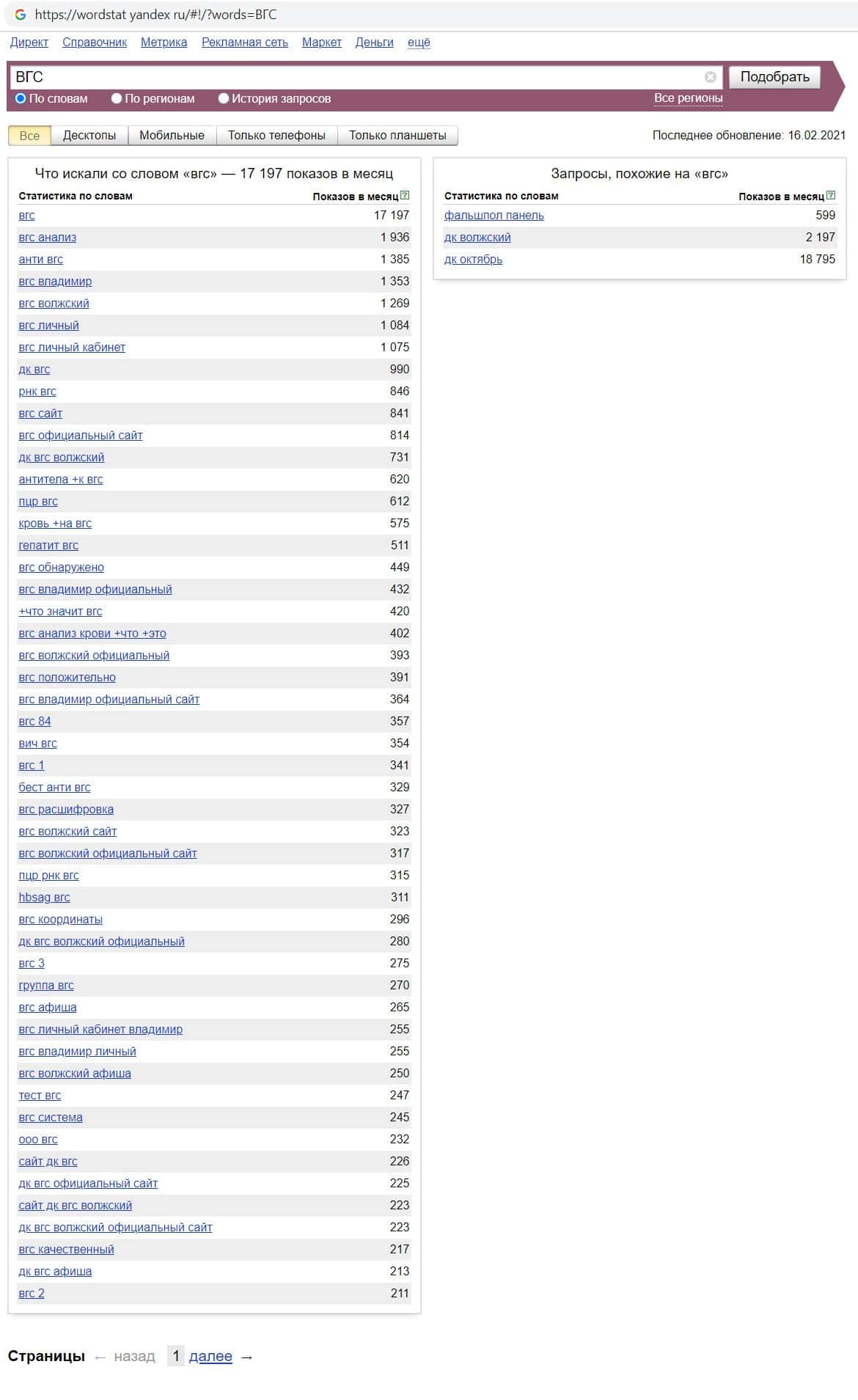 Мы так же проверили количество запросов компании аферистов В ГС по русскоязычному названию без пробела, а именно "ВГС". Этот запрос пользователи совершили 17197 раз.