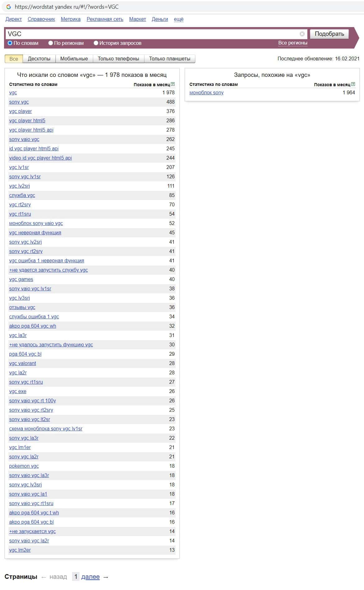 Мы проверили количество запросов компании V GC в Яндексе по названию фирмы, а именно "V GC". Данный запрос пользователи выполнили 665 раз в течении месяца.