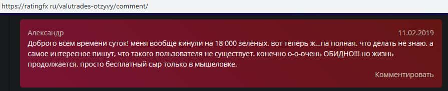 Лохотрон Валют Трейд опрокинул очередного пользователя сети интернет на деньги