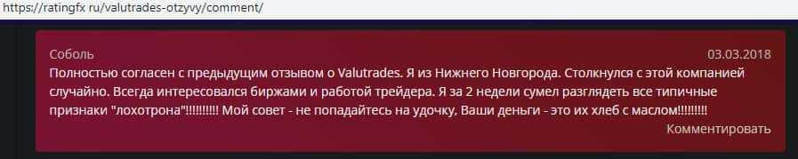 - Еще один пользователь не рекомендует иметь дело с аферистами Valutrades