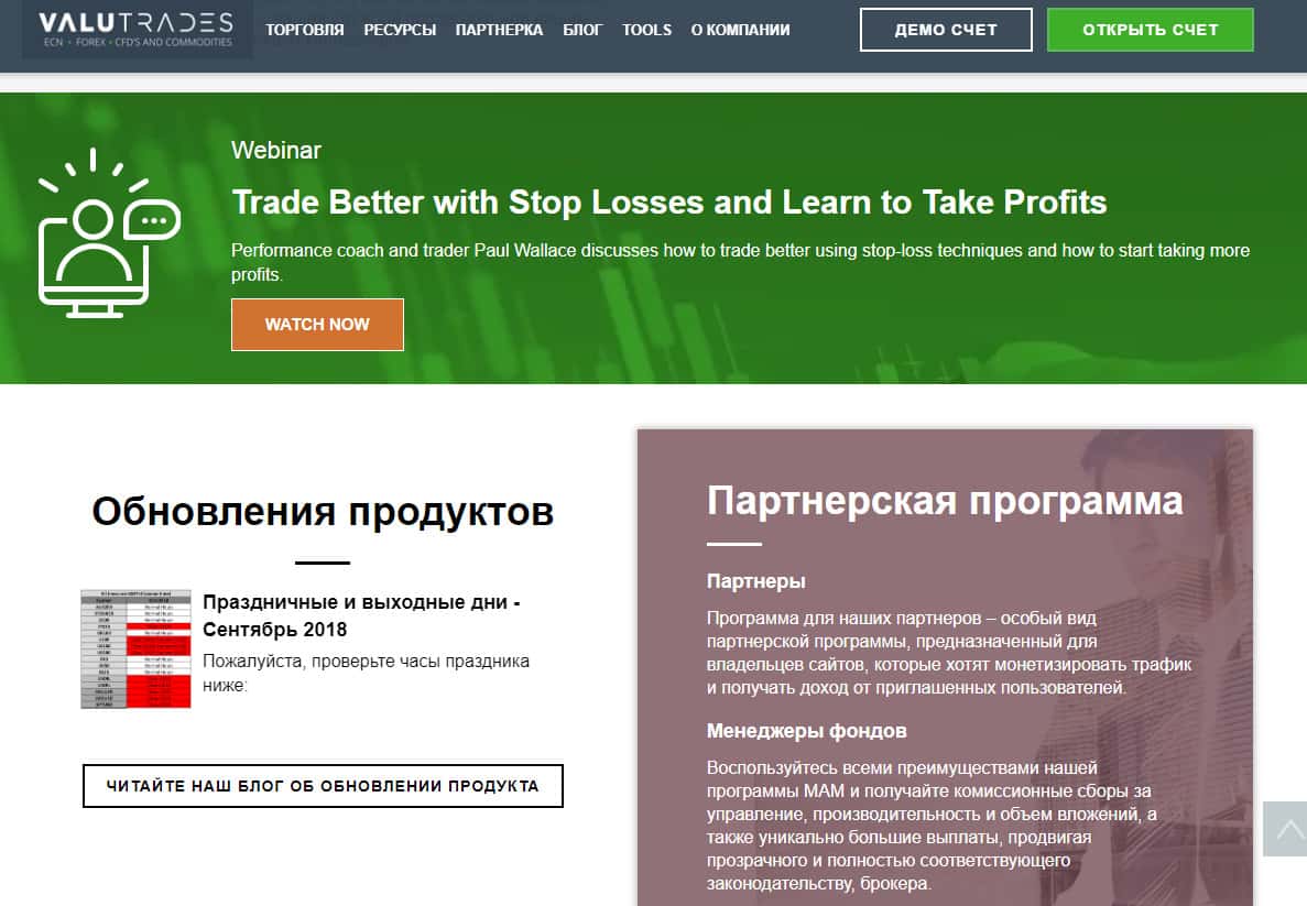 Начинается подвальный сайт у шулеров Valutrades довольно типично и ожидаемо, а именно со стандартной корявой шапки сайта, в которой у проходимцев Валют Трейд имеется стандартная лапша на уши наивной клиентуре, под предлогом которой аферисты Valutrades будут нагло кидать наивную клиентуру на деньги и попробуют впарить менеджера-мошенника.