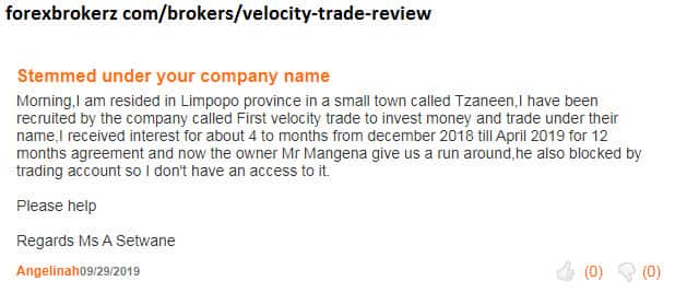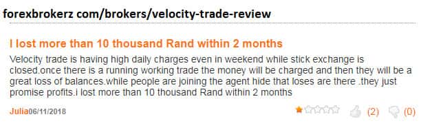 Трейдер потерял 10 000 рэнд или более 500$ с лоховодами Велосити Трейд