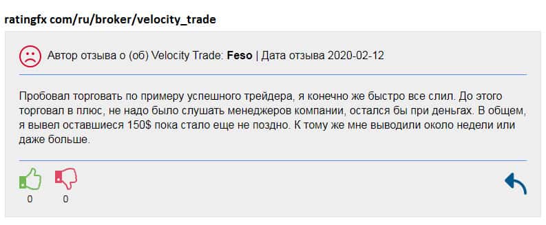 - Лохокухня Velocity Trade задержала исполнение ордера и трейдер на этом потерял 500$
