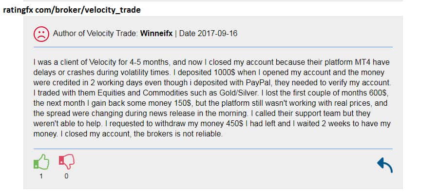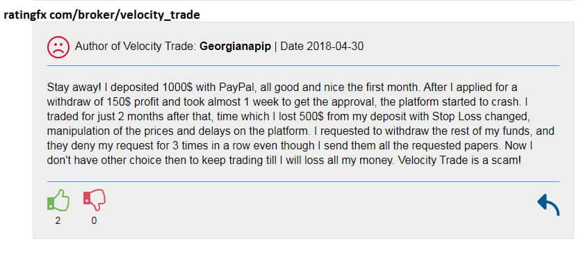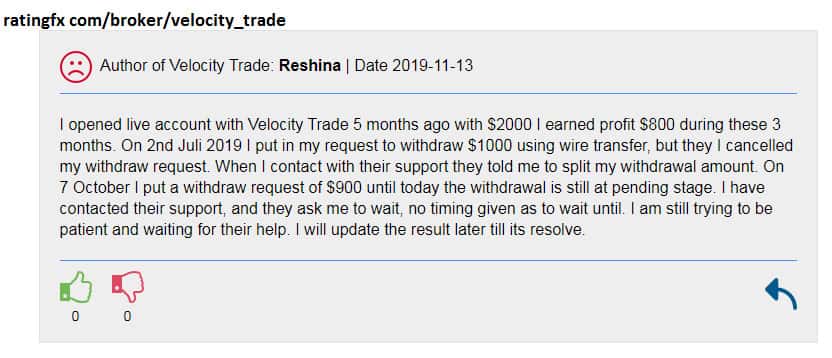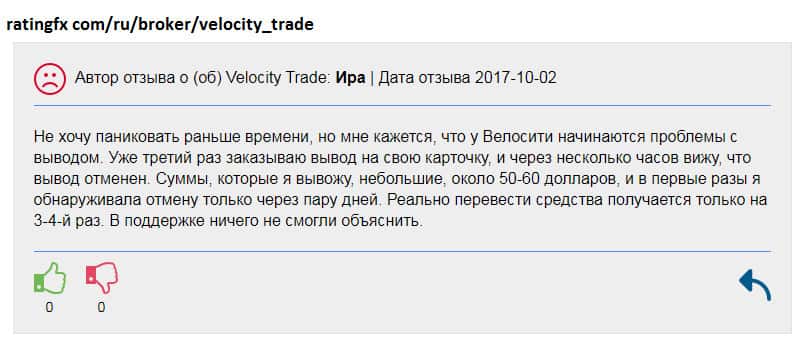 У шаражки Velocity Trade не прекращаются проблемы с выводом средств пользователей!