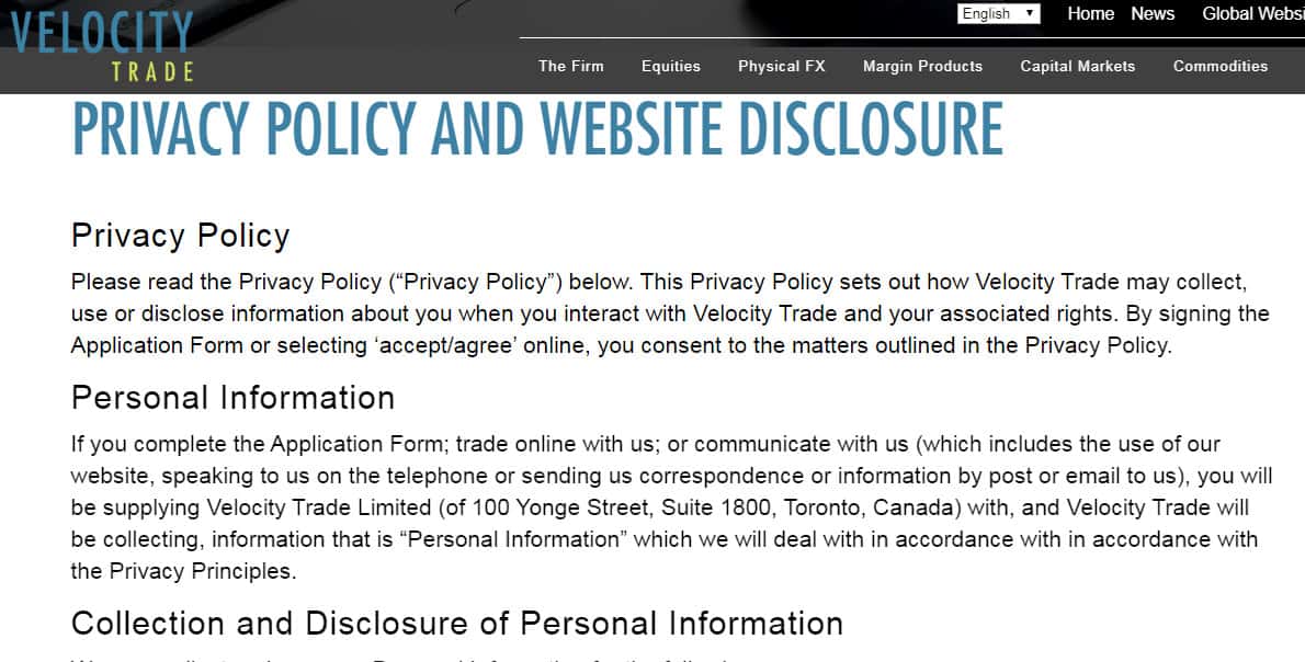 - Политика конфиденциальности псевдоброкера Velocity Trade не защищает персональные данные трейдера