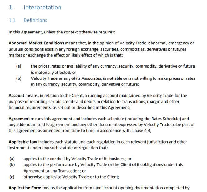 Клиентское соглашение шараги Велосити Трейд для Австралии.