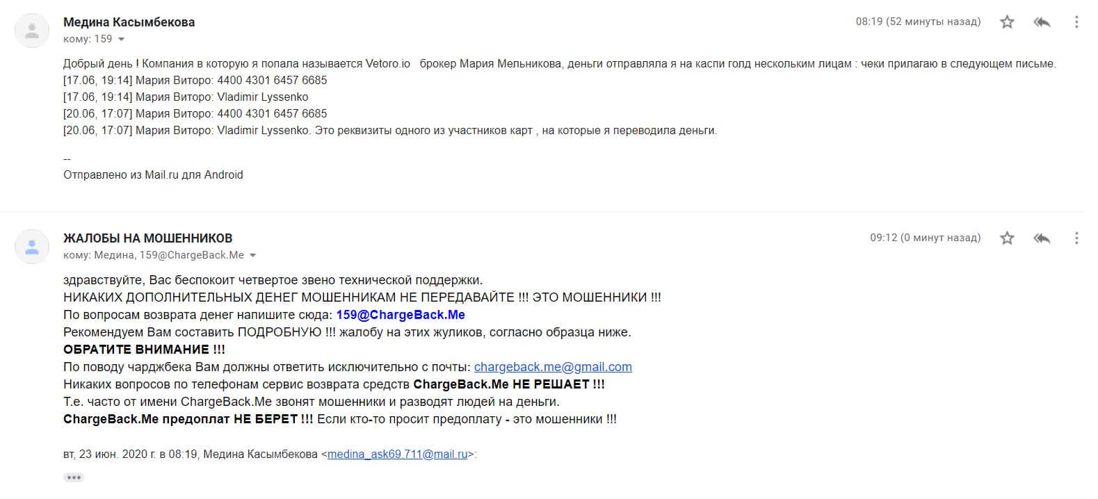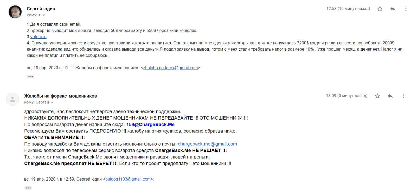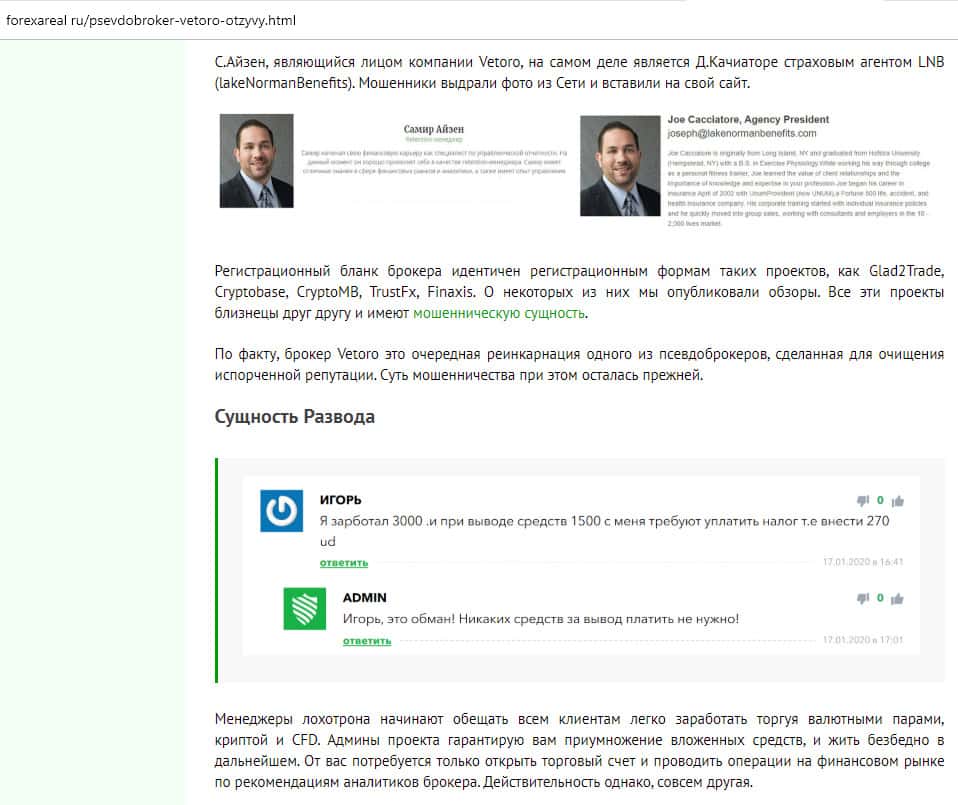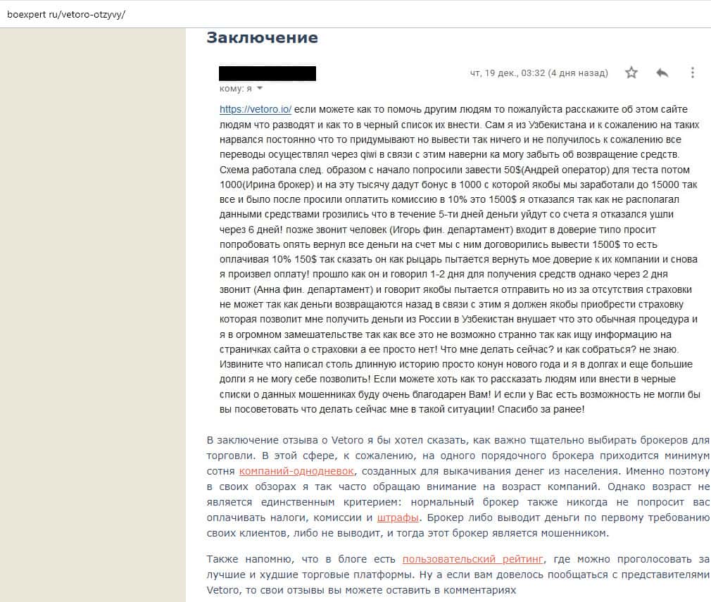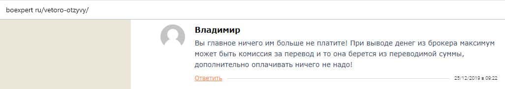 - Не платите выдуманную комиссию конторе Vetoro io