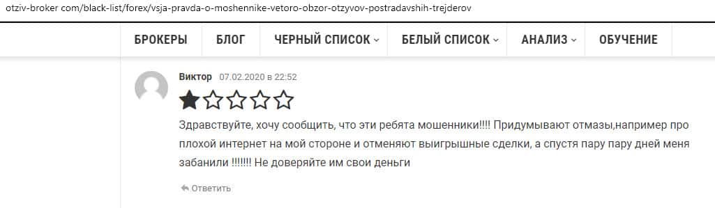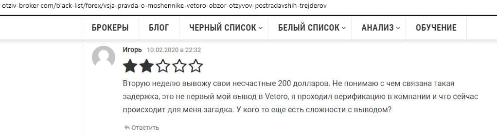 - Очередной не вывод со стороны форекс-аферистов Веторо
