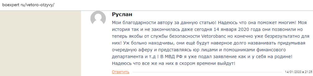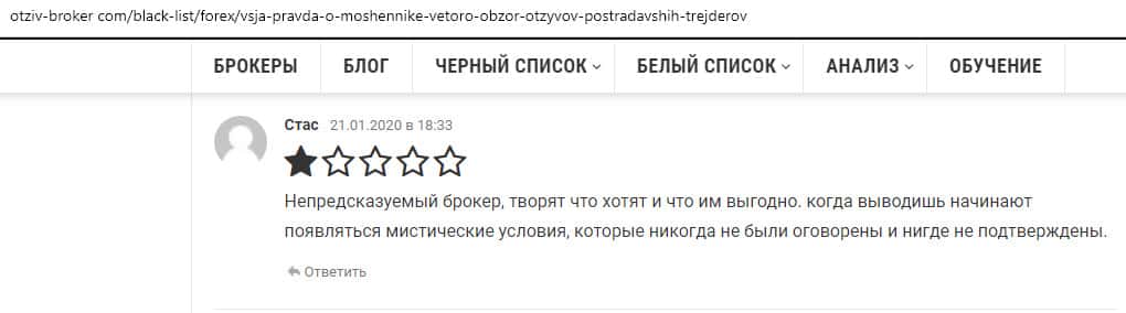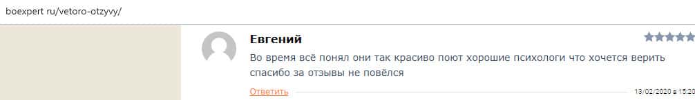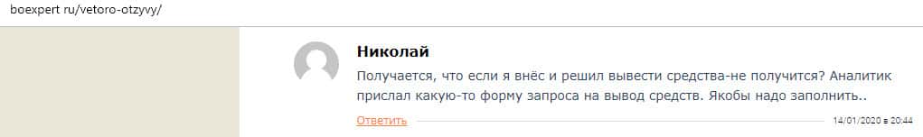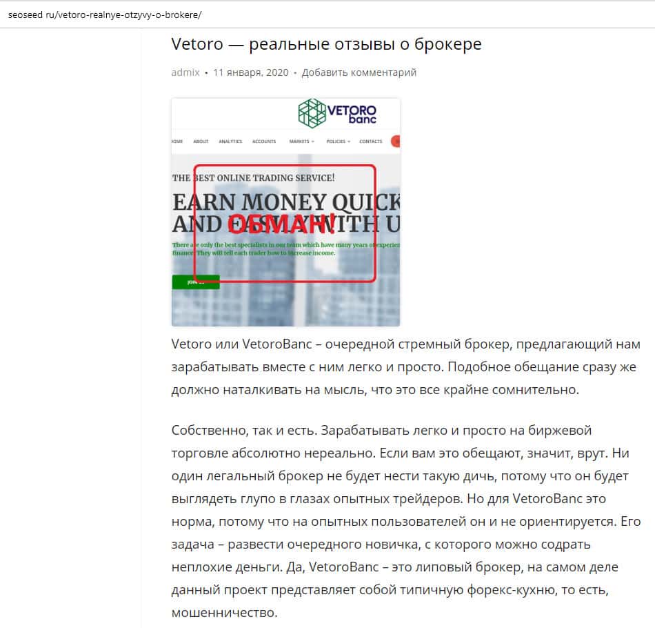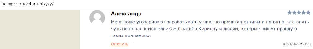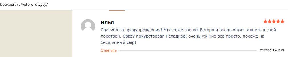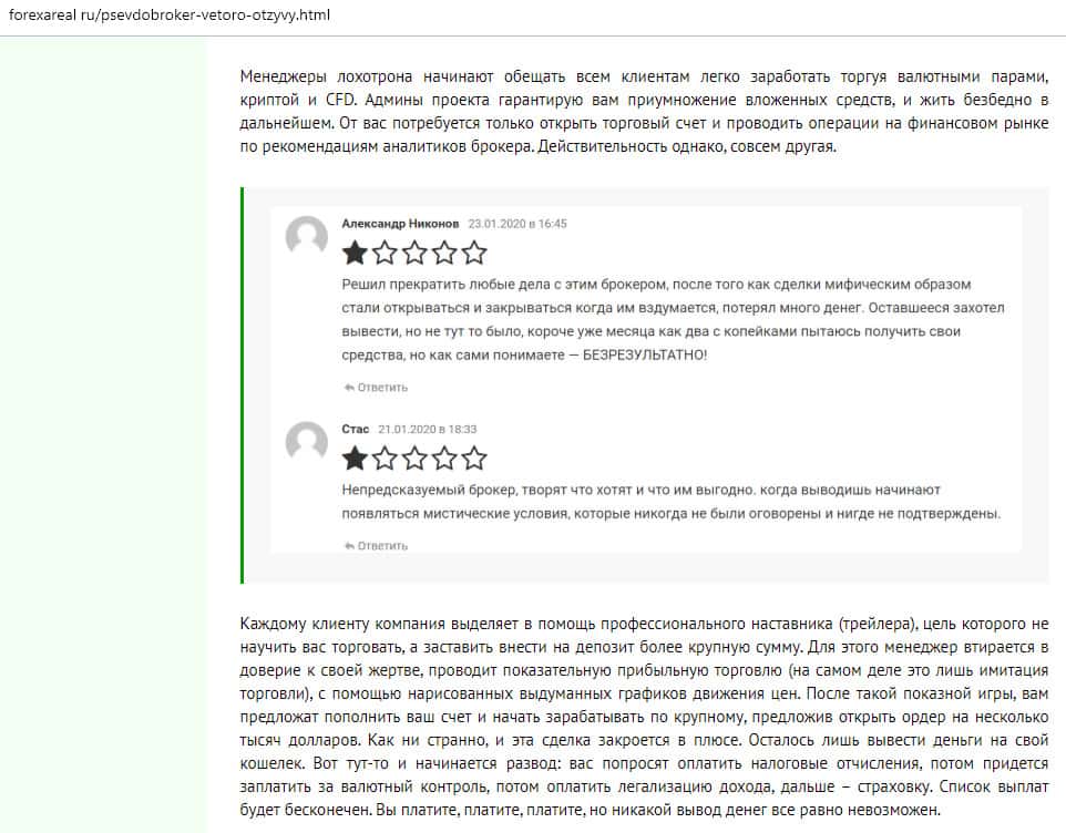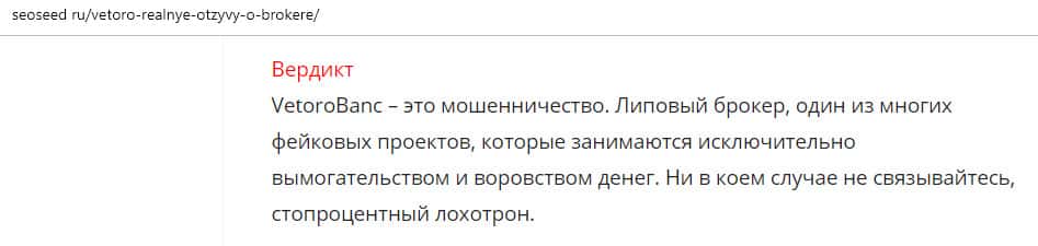 - Очередной обзор не рекомендует контору Веторо