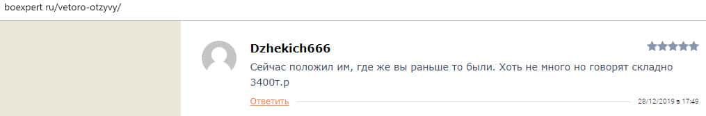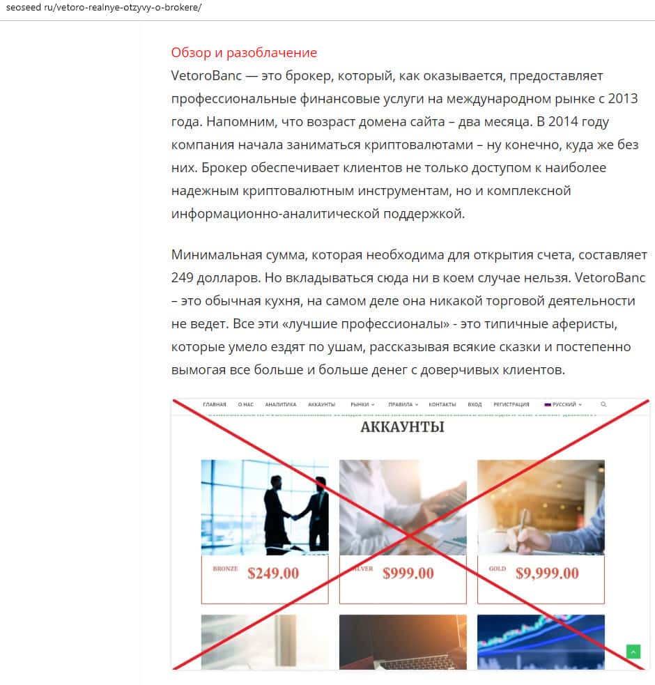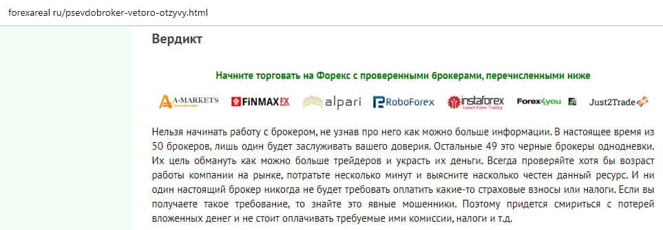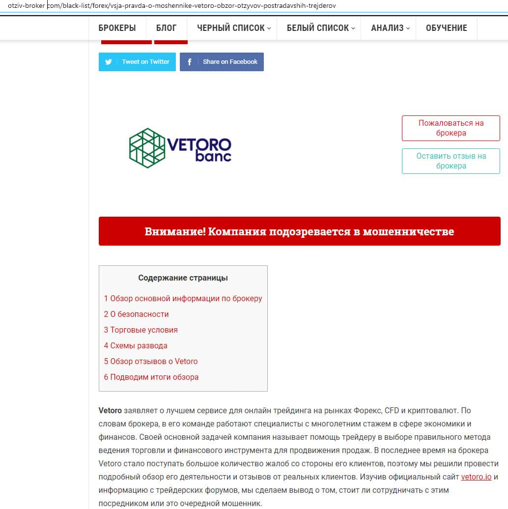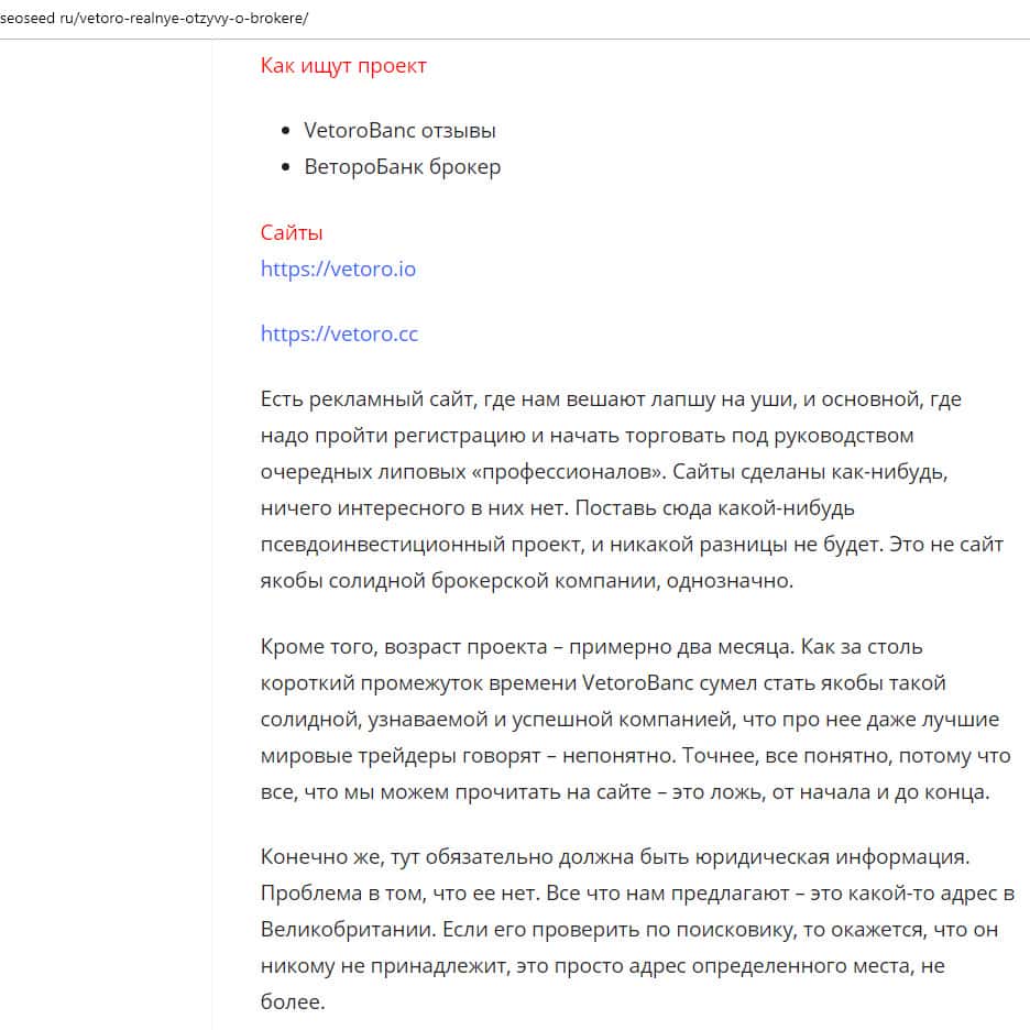 - Очередной обзор не рекомендует контору Веторо