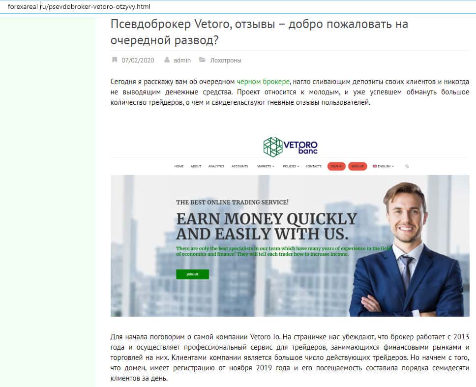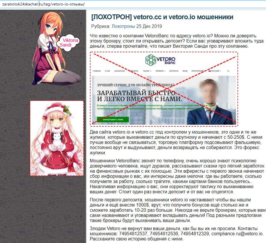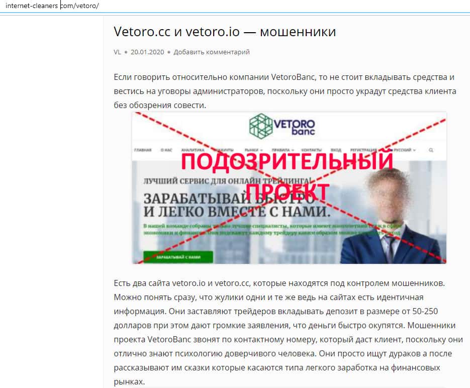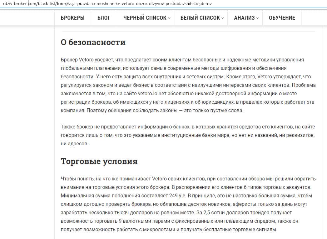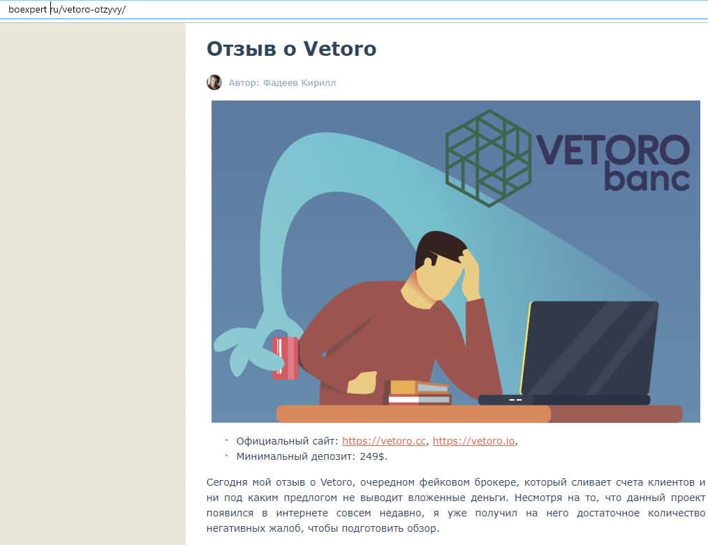 Обзор сайта мошенников Vetoro io
