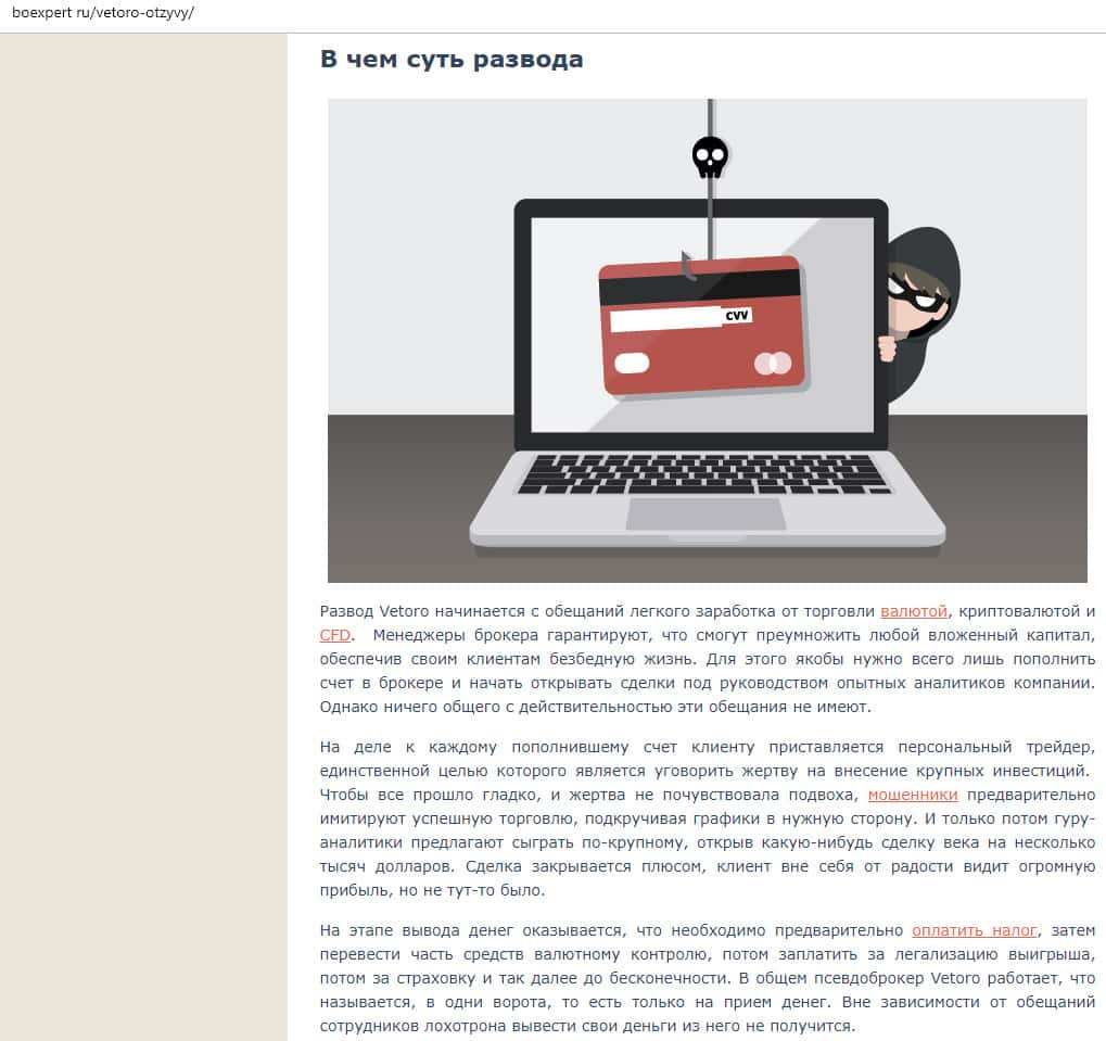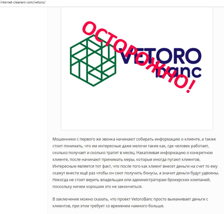 О мошенничестве в Vetoro io