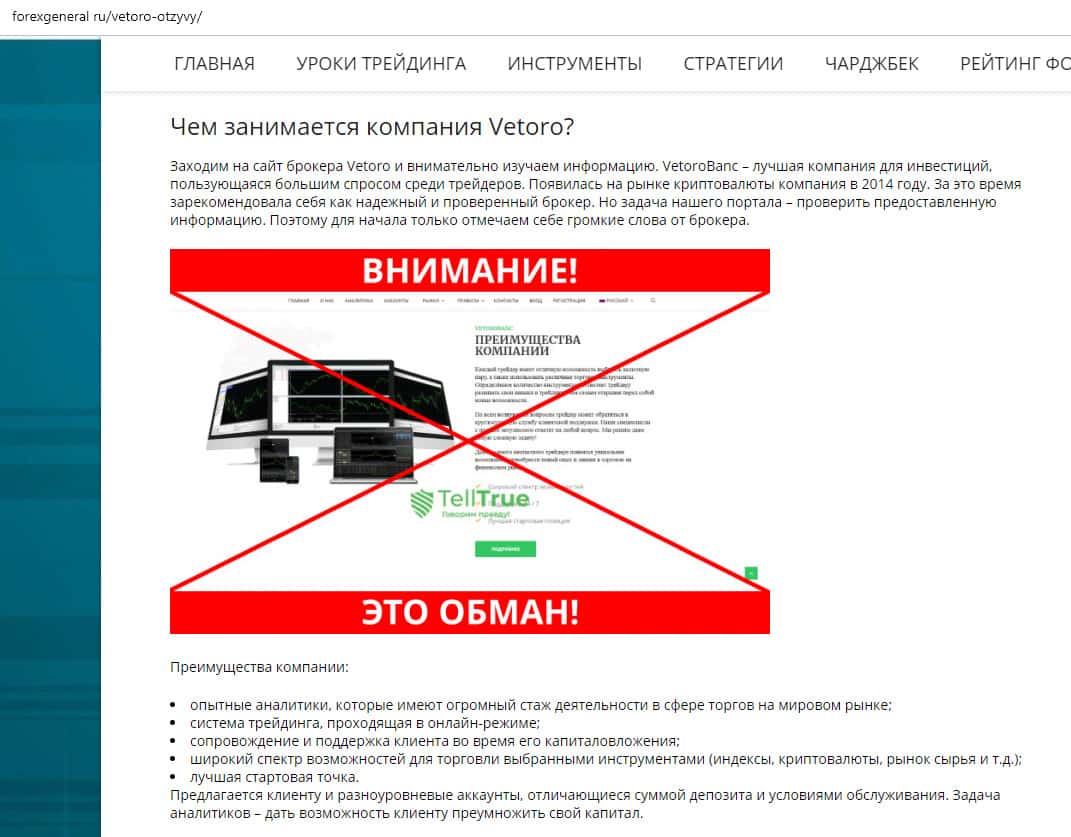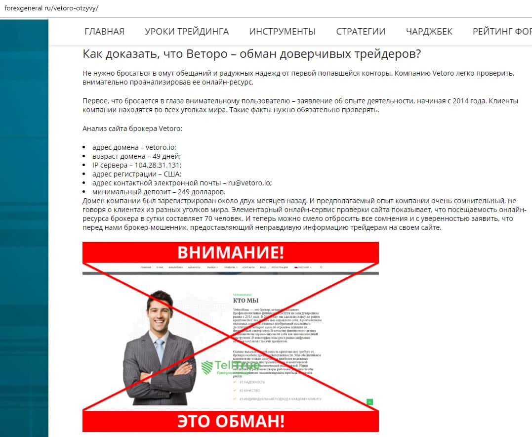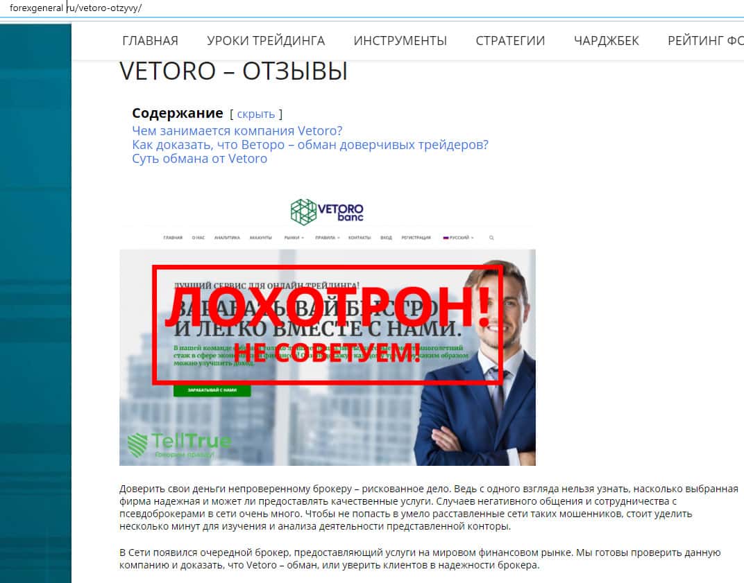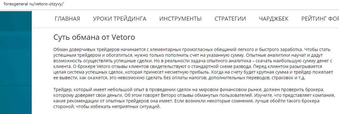 - Портал forexgeneral ru не советует лохотрон Vetoro io
