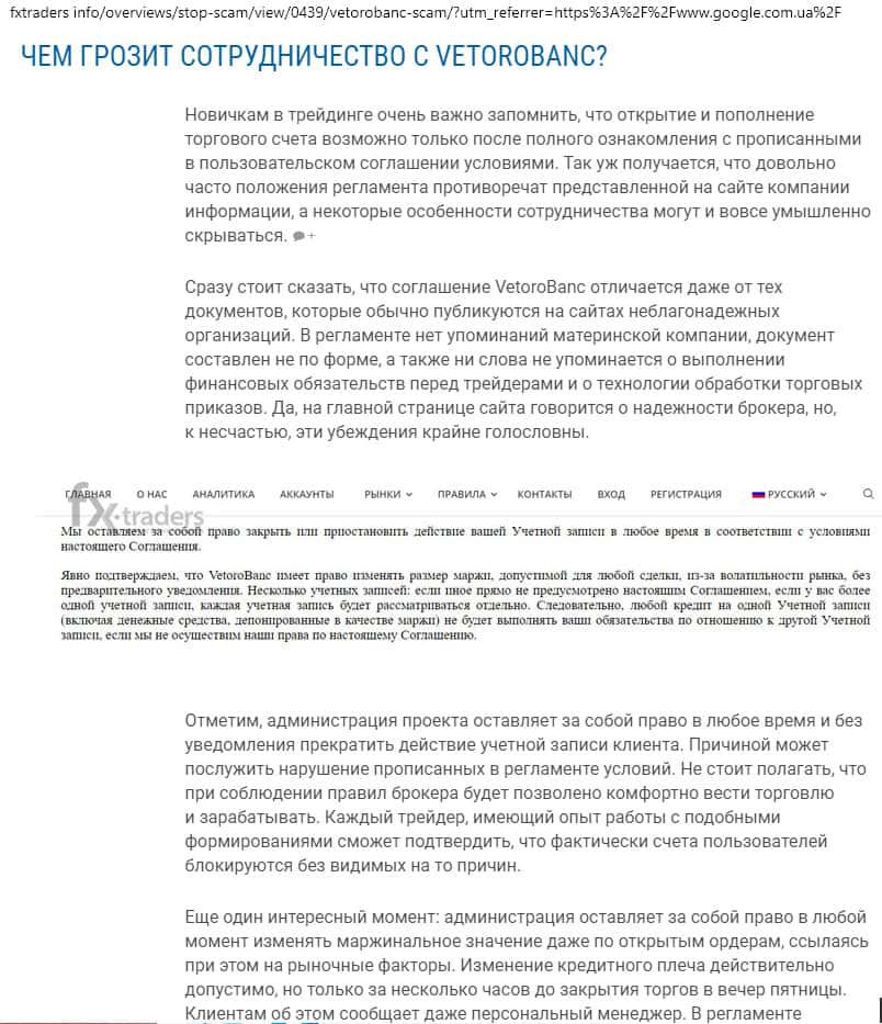 - Клиентское соглашение мошенников Vetoro io