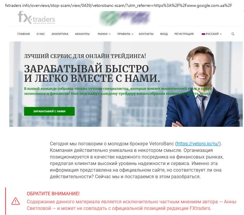 Во второй части сайта начинают рассказывать очередную ахинею, касательно того, что мировые лидеры якобы зарабатывают вместе с ними. О брокерской конторе Веторо, на самом деле, можно узнать из сайтов-обзорщиков, где полностью раскрывают всю их мошенническую суть по отношению к своим клиентам.