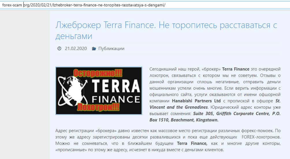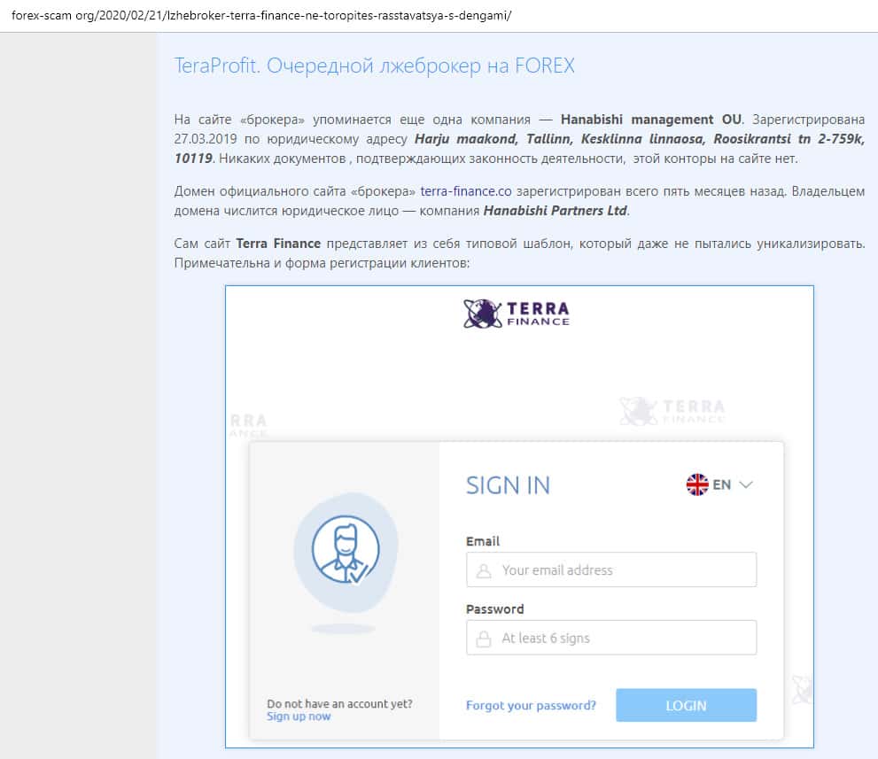На одном из ресурсов, который посвящен разбору брокерских форекс-контор, была найдена статья о кухне Terra Finance. Но в большей мере нас заинтересовали данные касательно компании-владельце не только данной конторы, а и лохотроне Веторо, и целой группировке подобных организаций. Она называется Hanabishi Partners Ltd.