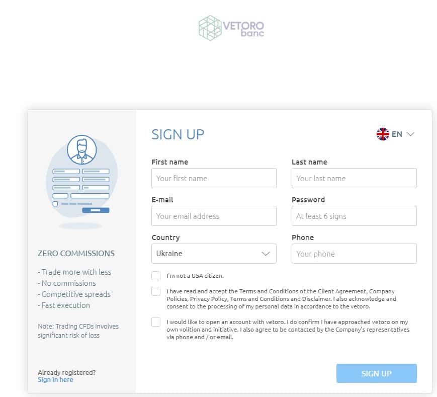 Лохотронская контора Vetoro io показывает, что им нужны ваши данные, дабы можно было использовать их в своих корыстных целях, либо продать другим мошенникам. Вот на своем сайте, жульбаны разместили регистрационную форму, где просят указать имя, фамилию, почту и телефон. Мы не советуем этого делать, для вашего же блага.