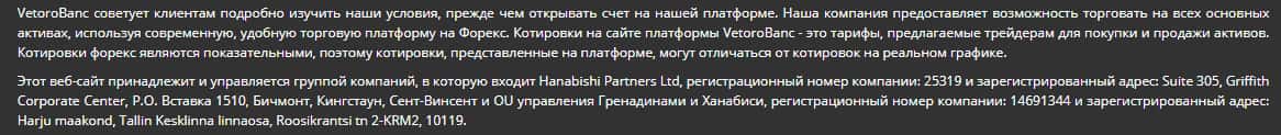 Отказ от ответственности со стороны форекс-аферы Vetoro io