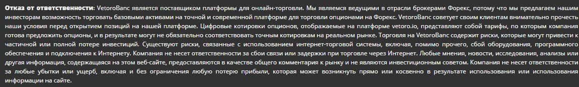 - Отказ от ответственности со стороны форекс-аферы Vetoro io