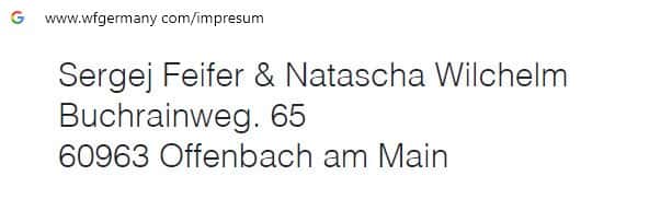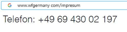 На сайте мошеннической организации WF Germany указано, что юридическое лицо, которому принадлежит бренд, зарегистрировано в Германии.