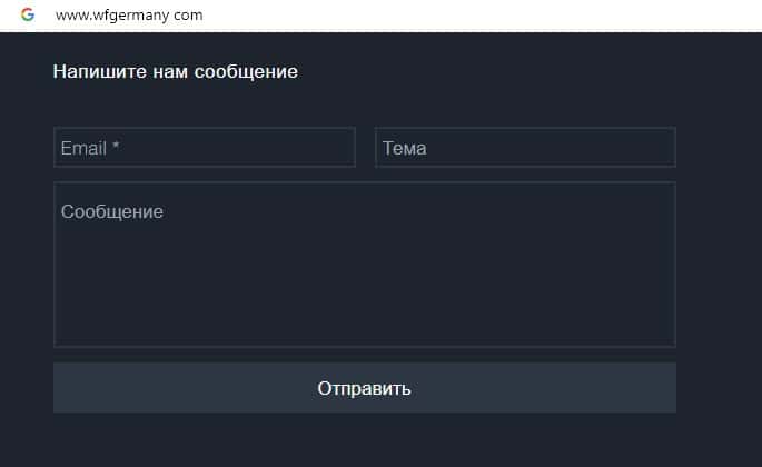 Обманщики WFGermany на своем официальном интернет-ресурсе указывают адрес электронной почты, а именно: