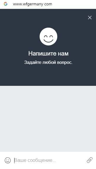 Также обманщики WFGermany предоставили в качестве обратной связи онлайн-чат, при помощи которого ведут сбор данных о клиенте, фиксируя все данные на сайте.
