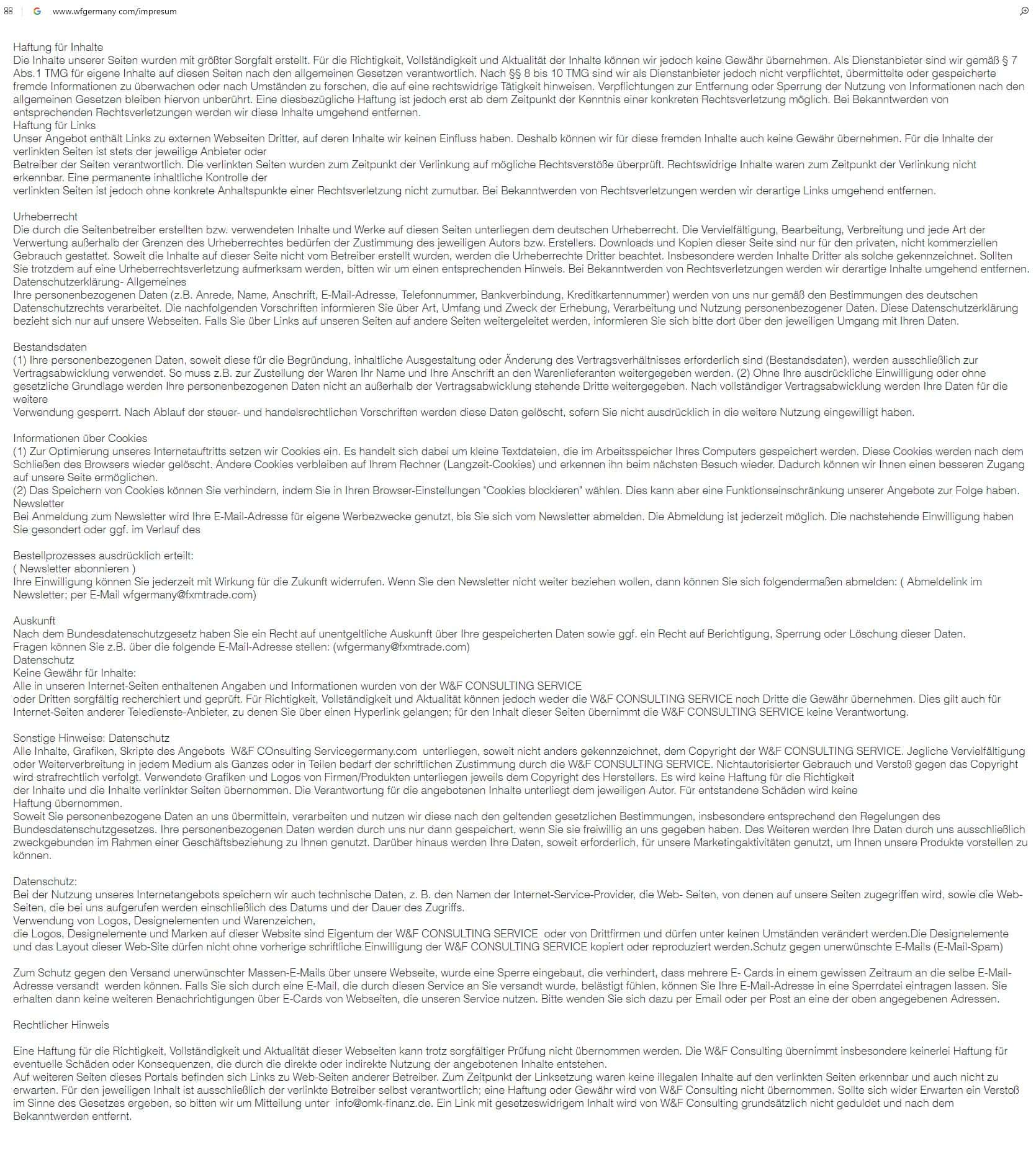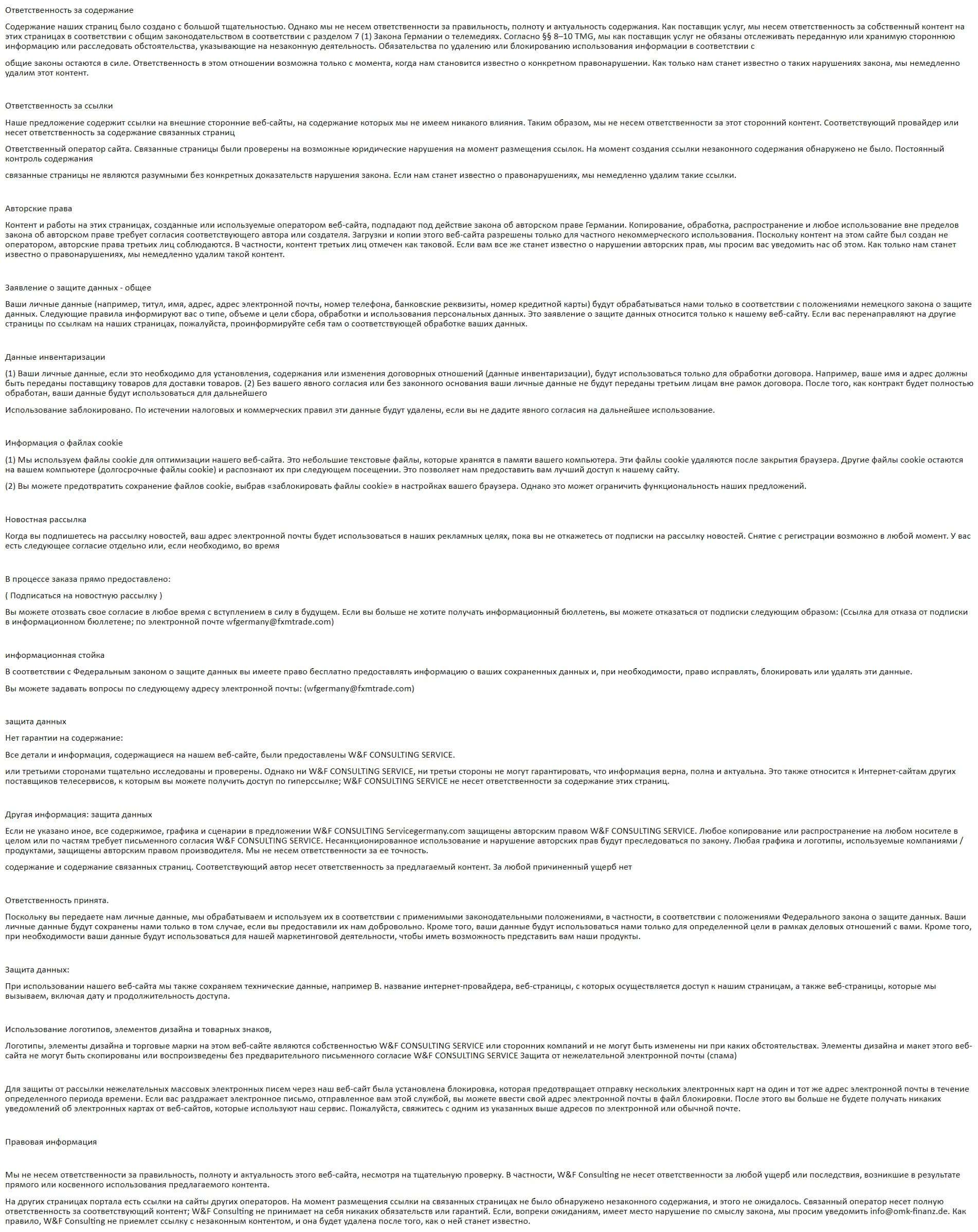 wfgermany com - официальный интернет-ресурс конторы W&F Consulting Service