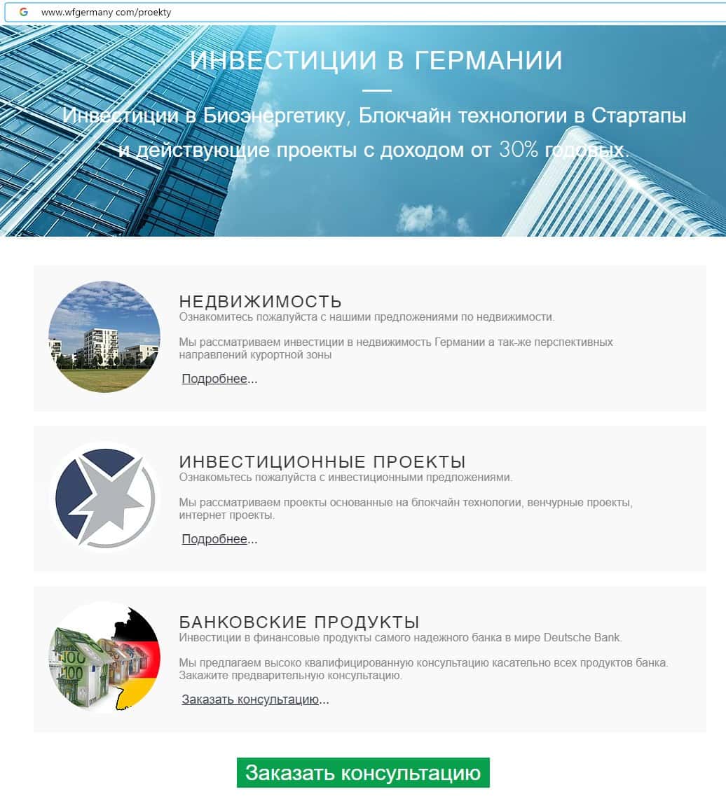 - wfgermany com - официальный онлайн-ресурс лохотронщиков ВФ Консалтинг