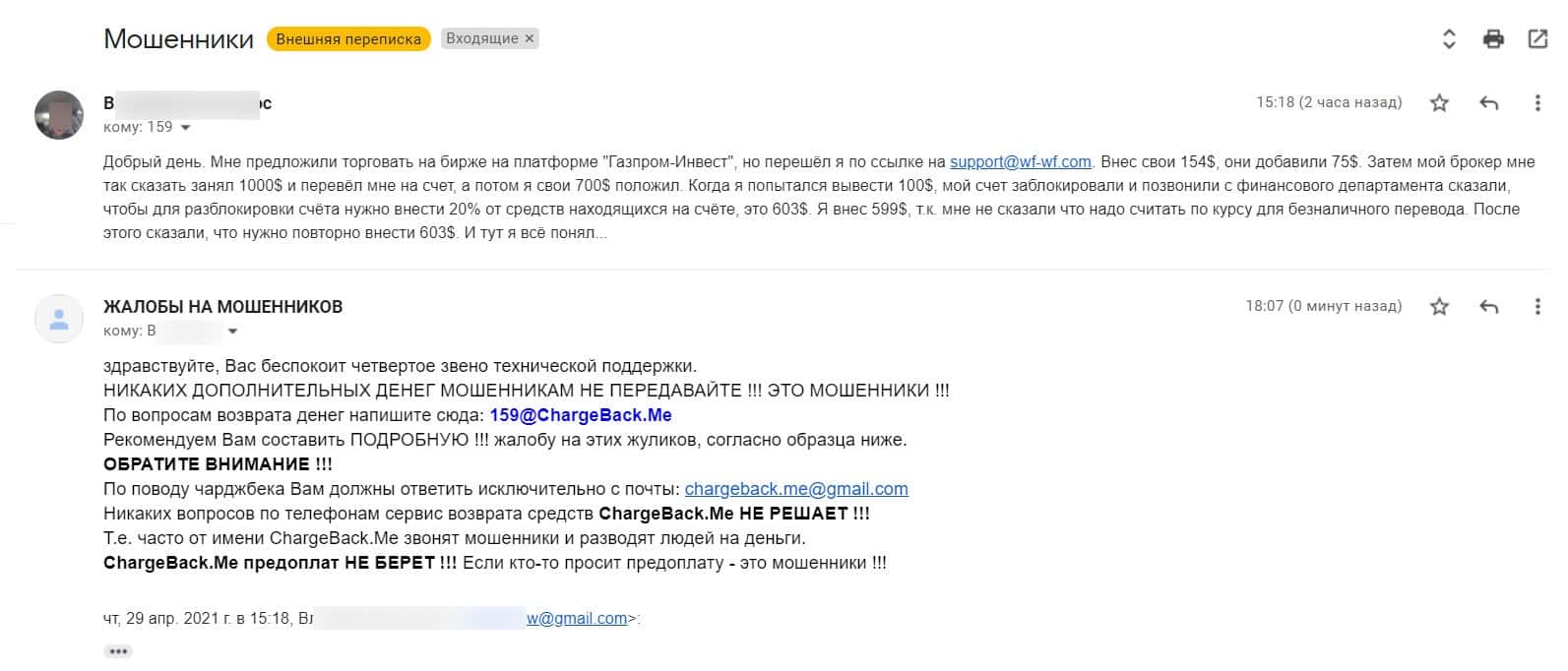 На почтовый адрес сайта по сбору информации о деятельности мошенников Форекс пришла жалоба о том, что аферисты ВФ ВФ и Газ Руси действуют сообща.