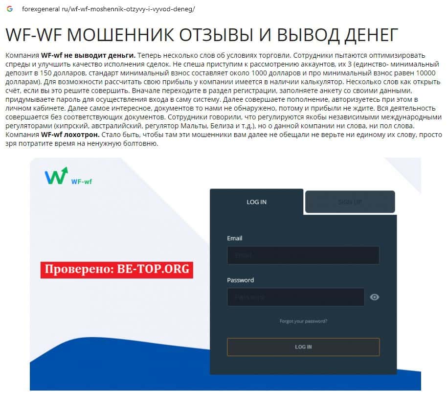 Отзывы о мошеннической организации WF WF, ныне присутствующие в сети