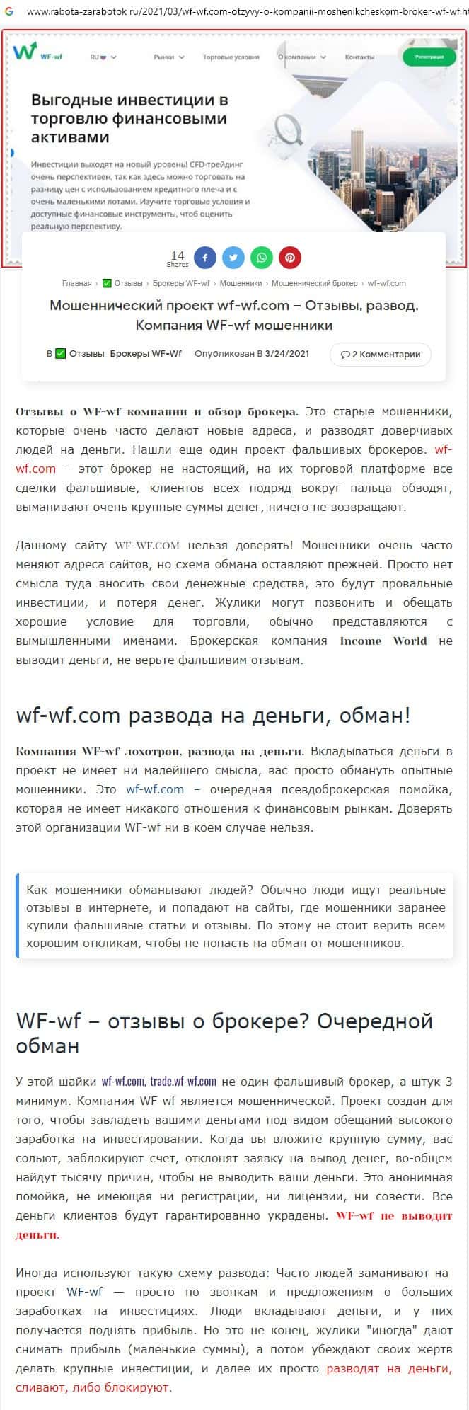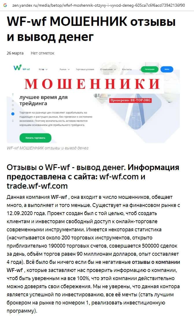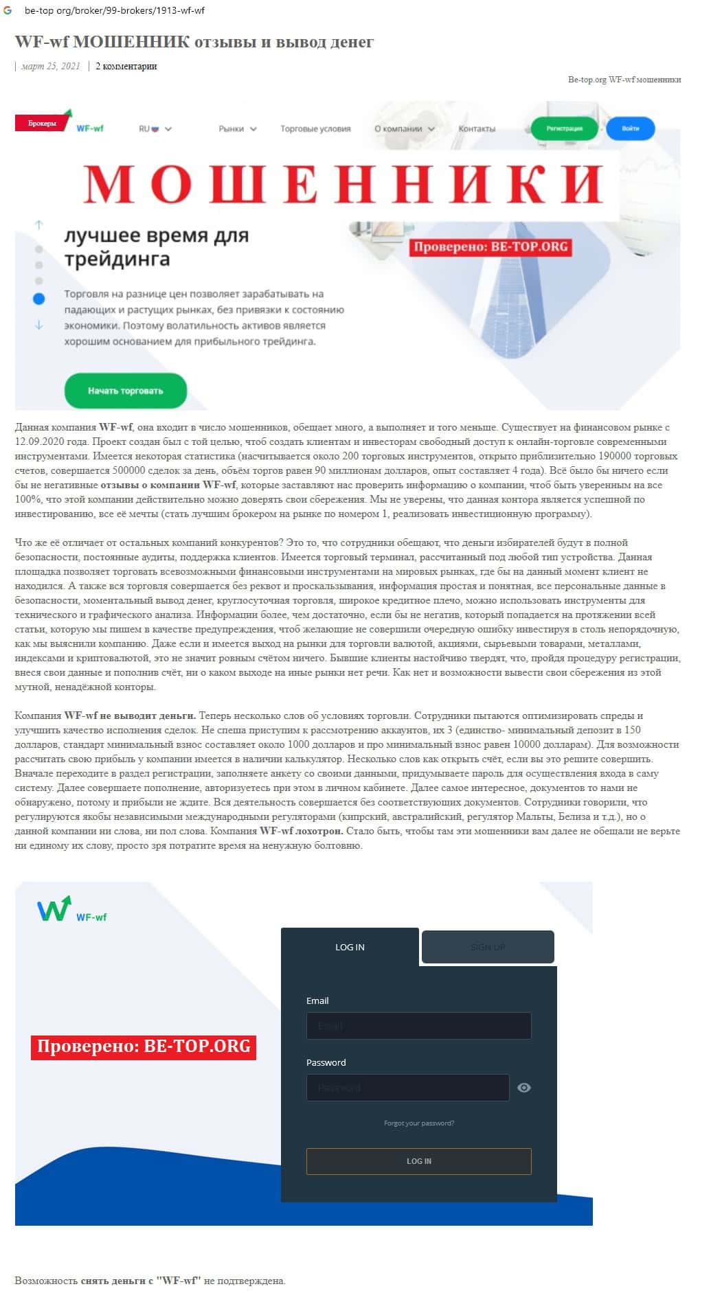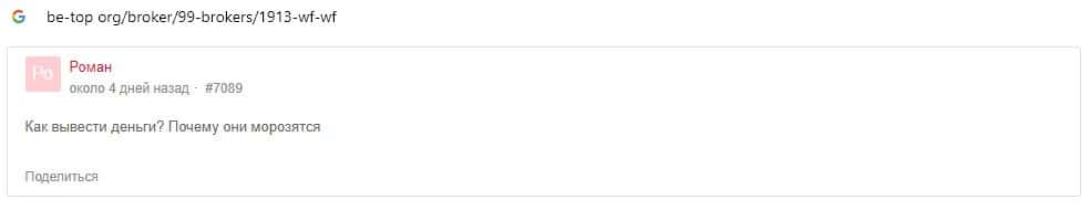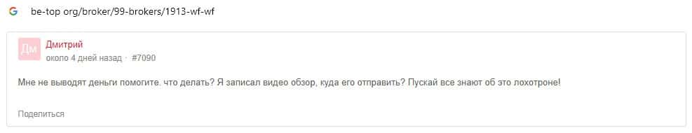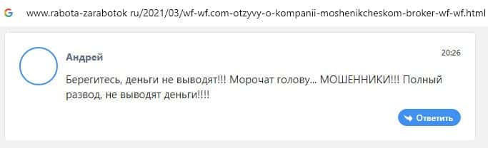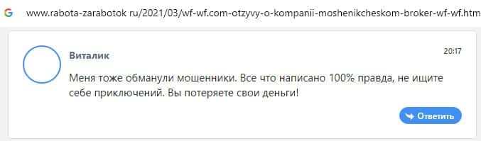 - Отзывы о мошеннической организации WF WF, ныне присутствующие в сети