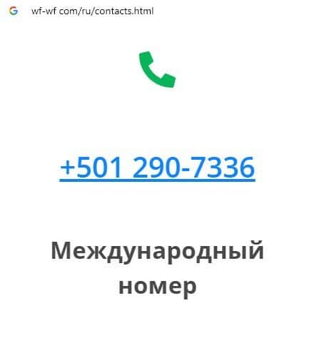 Обманщики WF WF на своем дырявом сайте указали номер контактного телефона, с которого навязчиво названивают потенциальным жертвам: