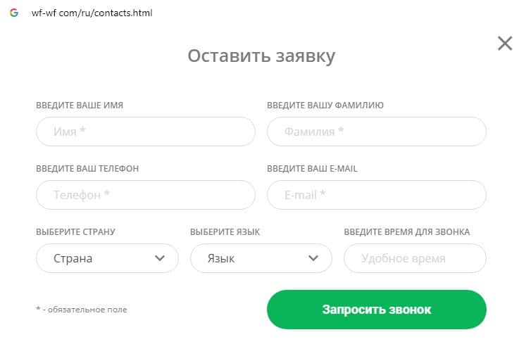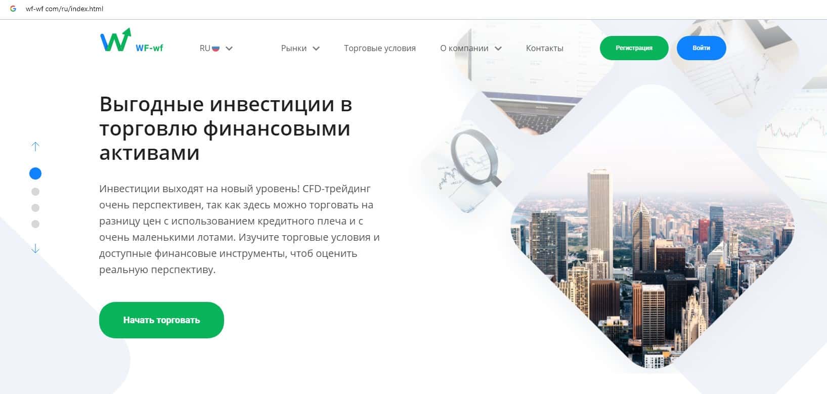 В данном разделе предлагаем увидеть скрин главной веб-страницы онлайн-ресурса скам-брокера WF WF, помните о том, что проекты часто меняют название домена своего сайта.