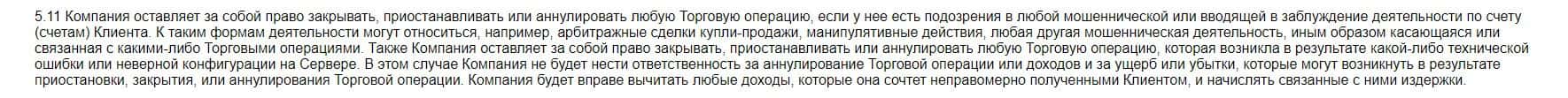 Согласно клиентскому соглашению скам-компании WF WF, данная контора вправе закрыть и аннулировать любую торговую операцию якобы по причине мошенничества.