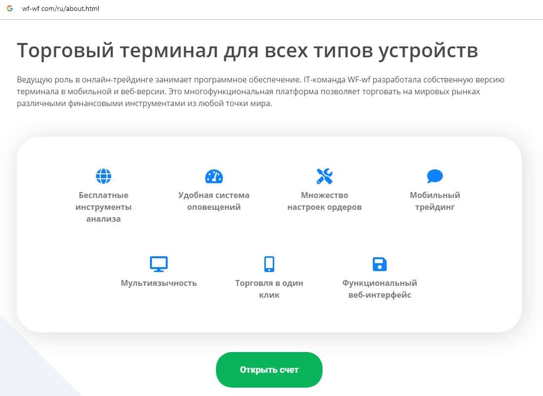 Торговая платформа на онлайн-сервисе аферистов WF WF