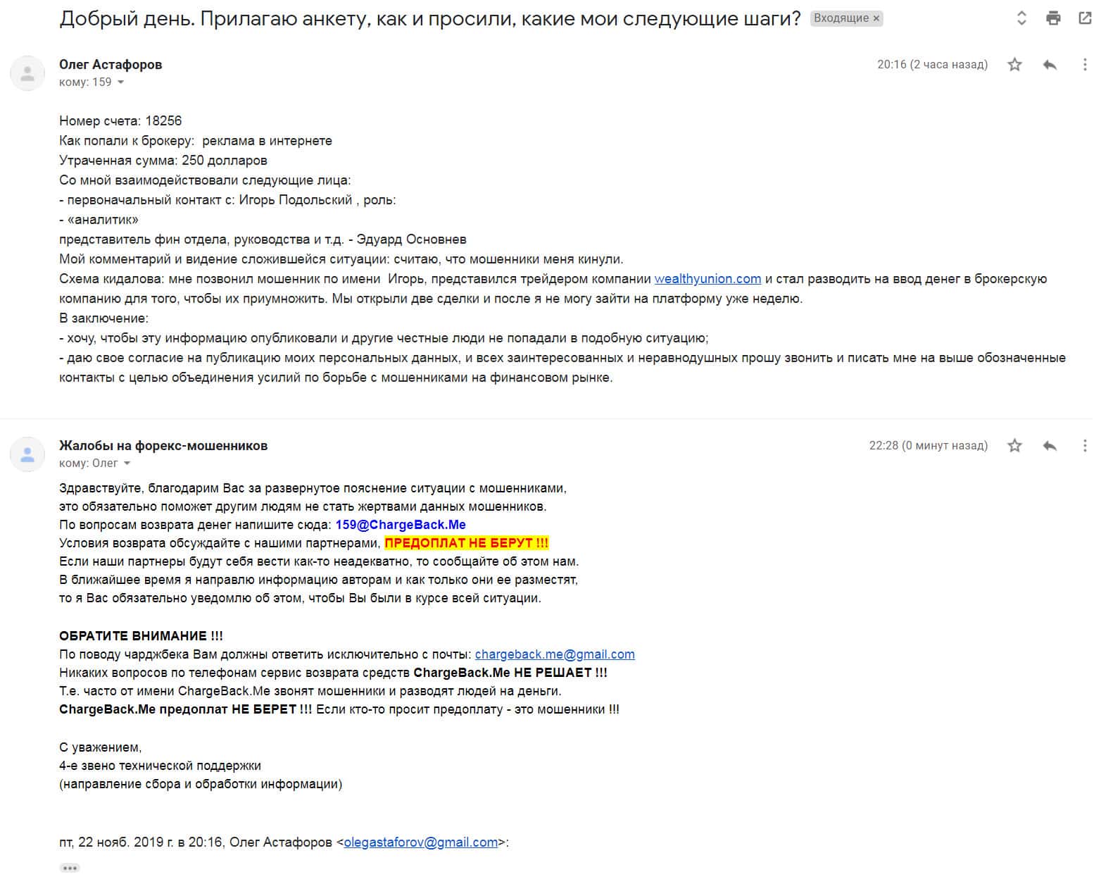 - Жалоба на мошенников в лице брокерской конторы WealthyUnion