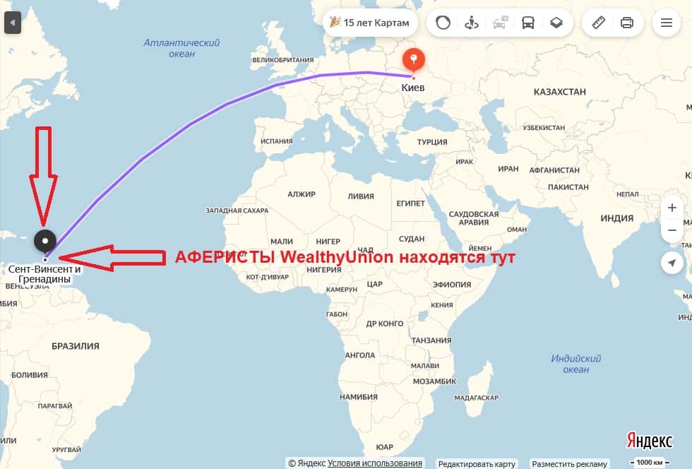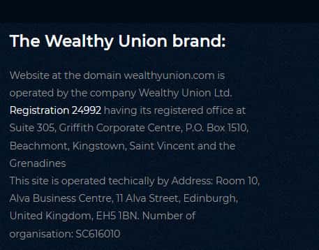 Чтобы себя обезопасить, мошенники решили в качестве регистрации выбрать оффшорную зону - Сент Винсент и Гренадины. Тут любят регистрироваться всякого рода жулики и WealthyUnion не стали исключением. Чтобы потом их просто было тяжело найти они и выбрали такую тактику.