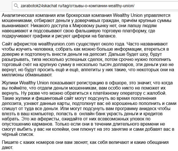 zarabotok24skachat ru - сайт с мнением о лохотроне WealthyUnion