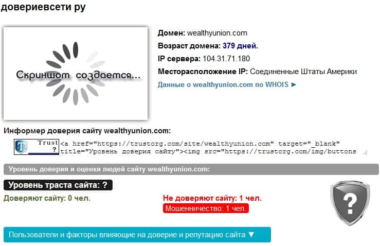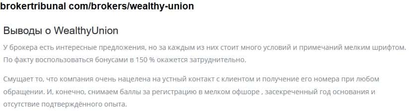 - Что можно сказать о сайте жуликов WealthyUnion?