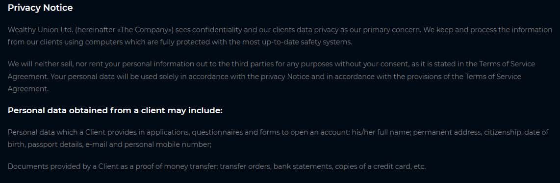 Никаких услуг, о которых они заявляют, на самом деле не предоставляется, потому что WealthyUnion - это типичные жулики. Вам навешают красивой лапши на уши, чтобы вы поскорее вложили туда свои деньги, а потом кинут самым наглым образом, как это случилось уже не с одним клиентом. Проект не нацелен на долгую работу. Лучше держаться от них подальше - сохраните деньги.