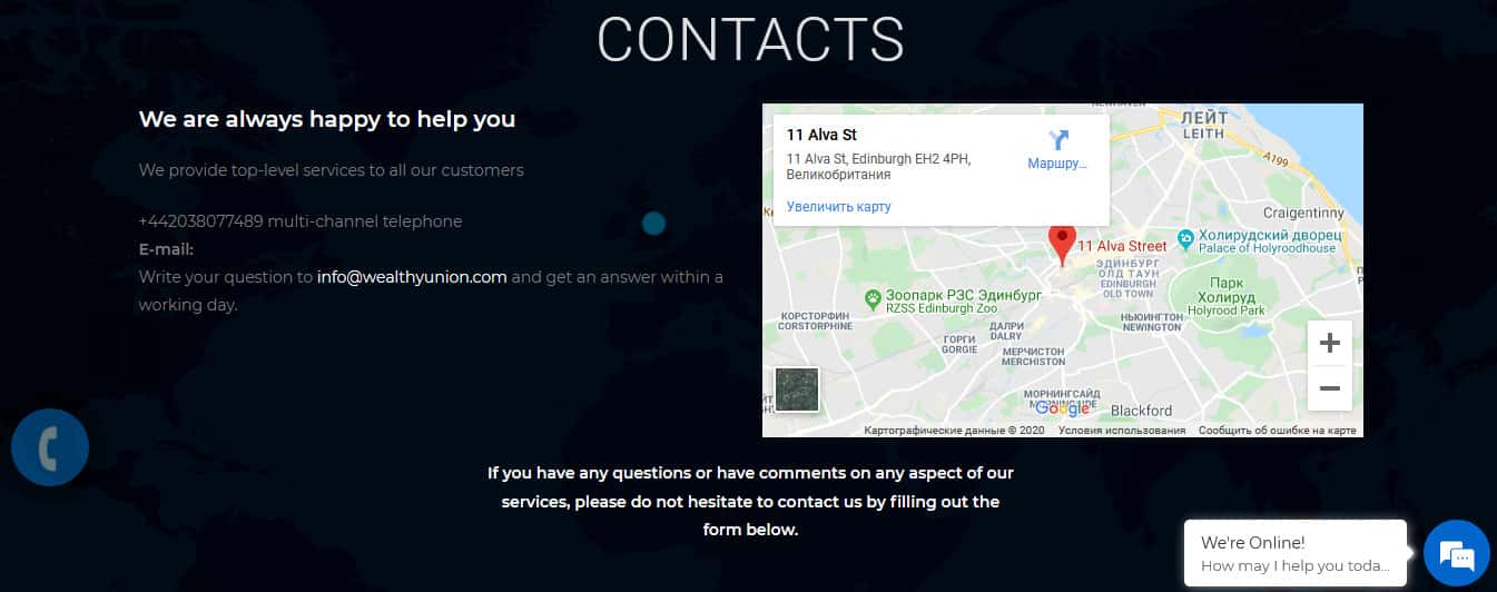 Данные о руководителях WealthyUnion на сайте не разглашаются, потому что мошенники просто не хотят в будущем становится фигурантами уголовных дел. Им не хочется такой пусть и маловероятной участи на территории СНГ, но все же они предпочитают оградить себя от этого.
