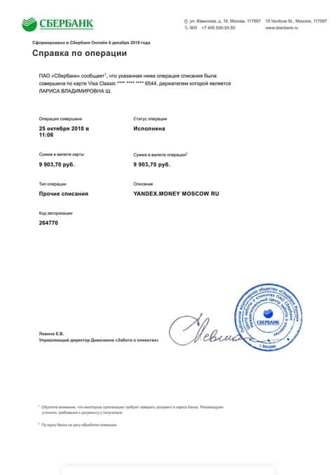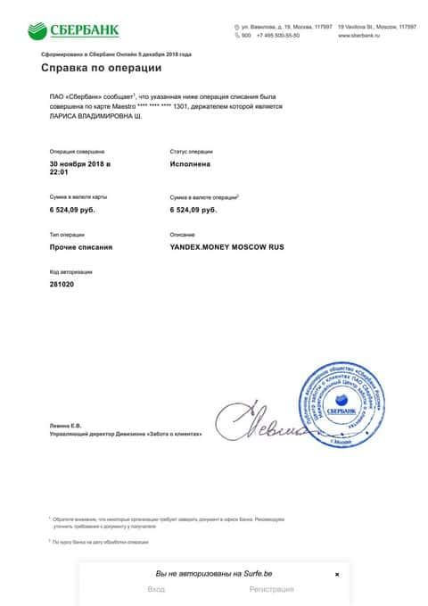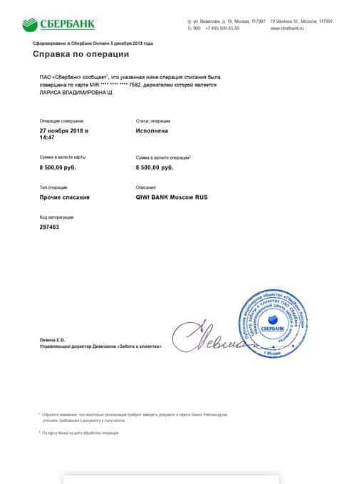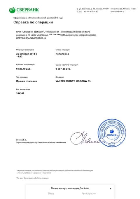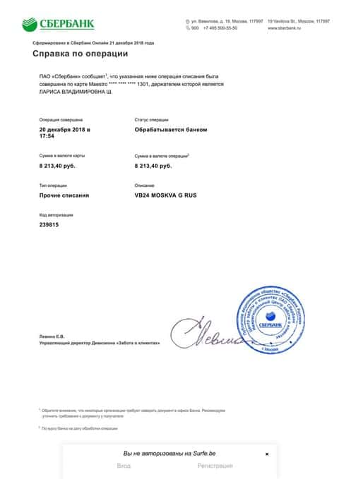 В подтверждение своих слов жертва псевдоброкеров из Vixsy предоставила чеки и квитанции из Сбербанка о проведенных операциях.
