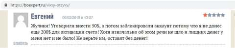 На этот раз жулье из Vixsy заманило клиента обманными уговорами и обещаниями золотых гор. Жертва потеряла 50 долларов, не успев закинуть еще 200, ведь аккаунт уже был заблокирован, а деньги слиты.