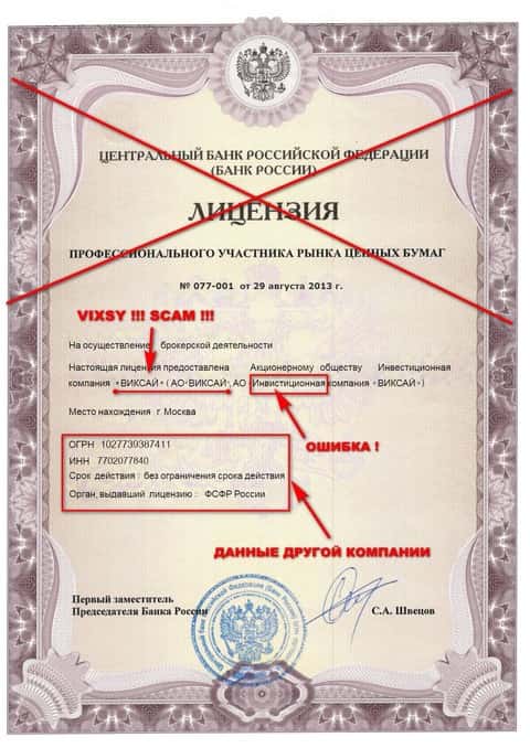 Циничность и хамство аферюг из Vixsy зашла дальше некуда. Только подумайте, мошенники взяли настоящую лицензию Московской биржи, и поставили в фотошопе свое название АО ВИКСАЙ, еще и допустив грамматическую ошибку. Проходимцы чистой воды, не верьте ни одному их слову.