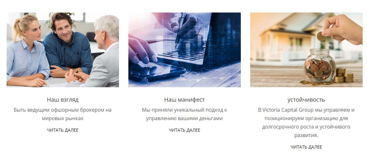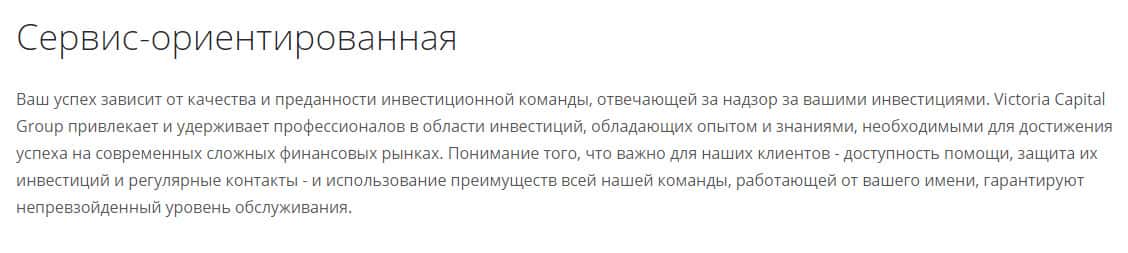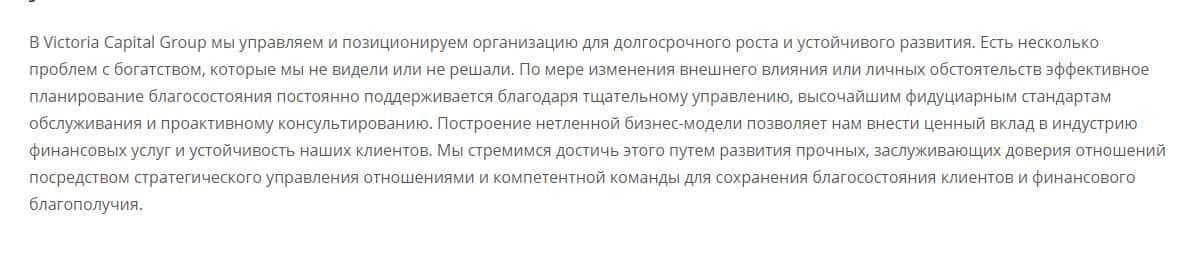 Совершенно лишний раздел сайта, где аферисты Victoria Capital рассказывают о себе