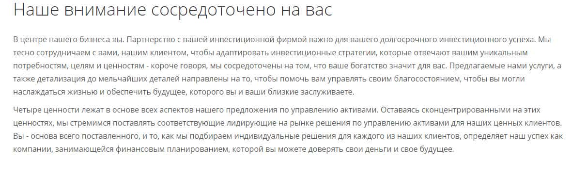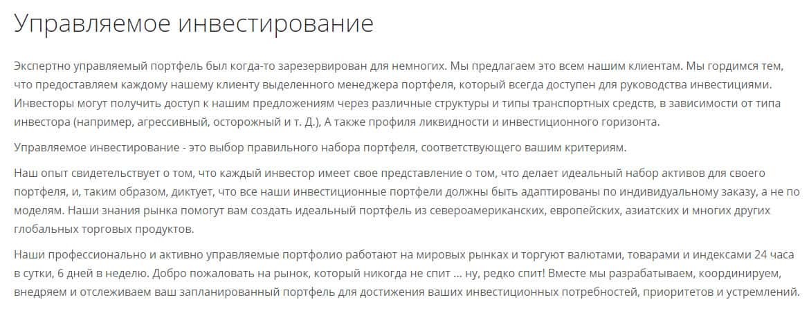 Шарага утверждает, что их знания рынка помогут вам создать идеальный портфель из североамериканских, европейских, азиатских и многих других глобальных торговых продуктов, но как сделают это неопытные трейдеры. А никак, их счета будут просто слиты сразу после первой же прибыли самим же руководством Виктория Капитал.